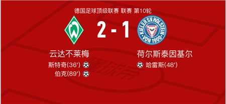 北京时间11月9日云达不莱梅vs荷尔斯泰因基尔,伯克得到全场最高的7.6分,德曼得到全场最低的5.9分