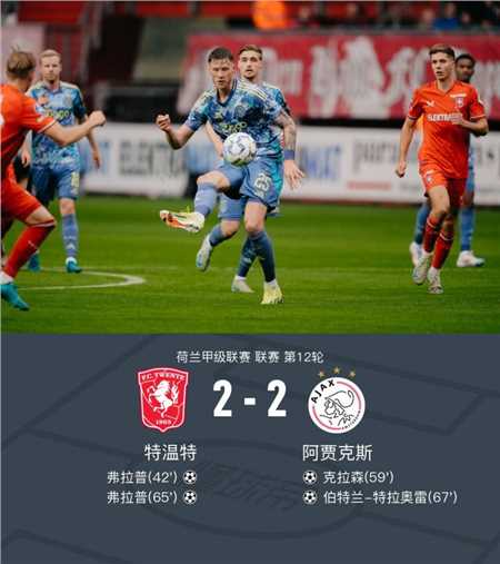 在荷兰甲级联赛第12轮的较量中,特温特坐镇主场迎战阿贾克斯。比赛中,特温特的弗拉普表现出色,成功打入两球。阿贾克斯方面,克拉森和伯特兰-特拉奥雷各自建功,帮助球队扳平比分。最终,双方以2-2握手言和,未能分出胜负。