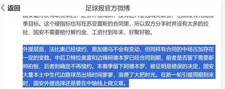 近日,根据足球报的报道,2025赛季法比奥已经续约,恩加德乌不会有变动。而下赛季北京国安会引进什么外援,只能是新的主帅来定。