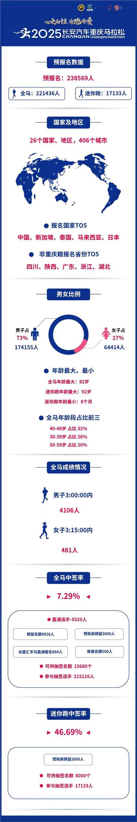 值得一提的是,在本次成功中签的选手中,不乏众多实力强劲的跑步高手。其中,男子选手方面,成绩在3小时以内的多达4106人,女子选手方面,成绩在3小时15分钟以内的也达到了481人。这些优秀选手的参与,不仅为赛事增添了更多的看点和悬念,也将为观众带来一场精彩绝伦的竞技盛宴。