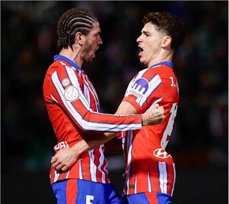 将联赛争冠作为自己赛季最重要目标的马竞,此役在大都会主场尽遣主力出战,展现出了势在必得的决心,在442的阵型中,门神奥布拉克继续首发,成为了床单军团的最后一道防线,加兰、朗格莱、吉梅内斯和略伦特四人构筑防线,加拉格尔、巴里奥斯、德保罗和小西蒙尼坐镇中场,双箭头则是阿尔瓦雷斯搭档格列兹曼。