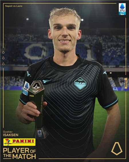 意甲第15轮一场较量,那不勒斯主场0-1不敌拉齐奥。赛后,打入唯一进球的拉齐奥前锋伊萨克森被意甲官方评选为全场最佳球员。