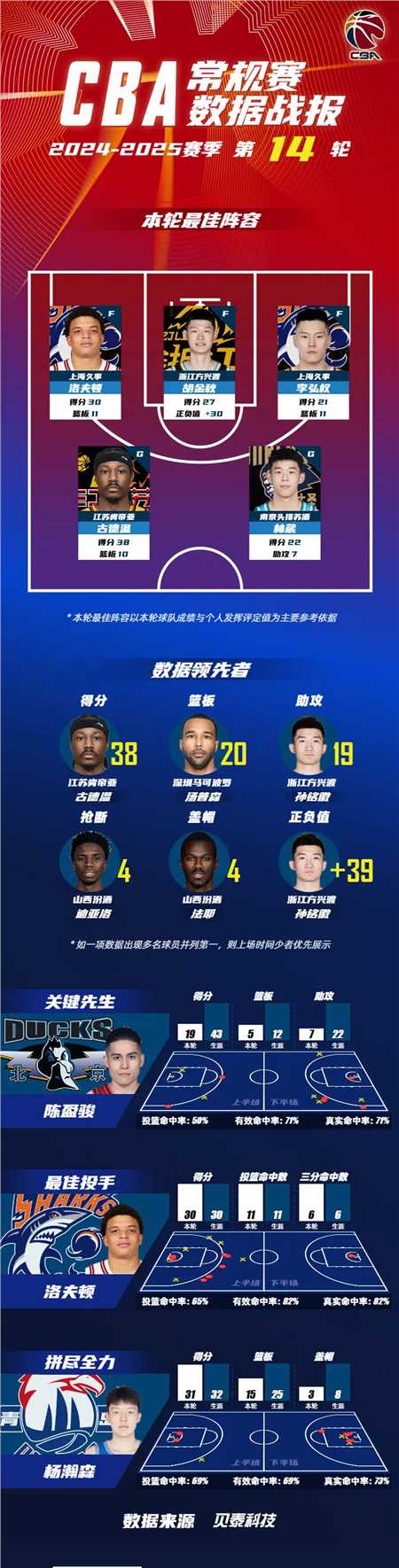 第14轮关键先生由来自北京首钢篮球俱乐部的陈盈骏获得;
