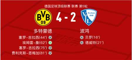 北京时间9月28日多特蒙德vs波鸿,塞罗-吉拉西得到全场最高的9.3分,梅迪奇得到全场最低的6.0分