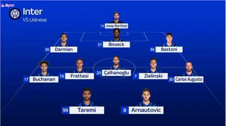 何塞普-马丁内斯;达米安、比塞克、巴斯托尼;布坎南、弗拉泰西、恰尔汗奥卢、泽林斯基、卡洛斯-奥古斯托;塔雷米、阿瑙托维奇