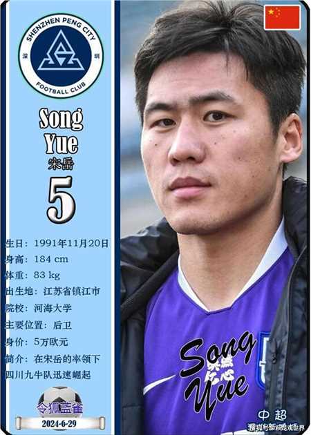 去年踢中超的球员,来了!1月17日,据德转信息显示,原深圳新鹏城后卫宋岳以自由身加盟大连英博。现年33岁的宋岳楞打后卫和后腰,还有一脚任意球功夫。目前宋岳德转的身价为5万欧元。宋岳为深圳新鹏城共出场43次,贡献1球+助攻1次。2023赛季中甲,宋岳帮助四川九牛夺冠,2024赛季中超,帮助新鹏城保级。