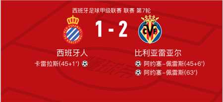 北京时间9月27日西班牙人vs比利亚雷亚尔,阿约塞-佩雷斯得到全场最高的8.6分,蒂尔诺-巴里得到全场最低的5.8分