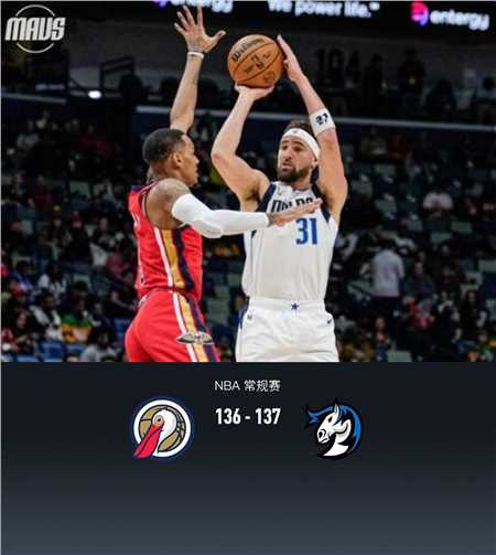 第四节鹈鹕特雷-墨菲拿下13分,独行侠pj-华盛顿拿下14分,最终鹈鹕136-137不敌独行侠