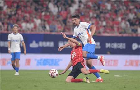 上半场双方在攻防转换上做得非常频繁,在炎热的天气之下,两支球队陷入了中场的鏖战之中。泰山队显然是有备而来,韩鹏在战术布置上,对周定洋和杨明洋进行限制,上半场两人接球和出球都被对手的球员围攻,球队在进攻端整体串联上受限,陷入了被动之中。