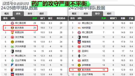 就比如药厂虽然目前八轮德甲进球是仅次于拜仁的第二多(20粒),但他们丢球也达到15粒,要知道德甲丢球倒数第一的基尔也就丢23粒,而失球最少的莱比锡仅仅丢了3个球......